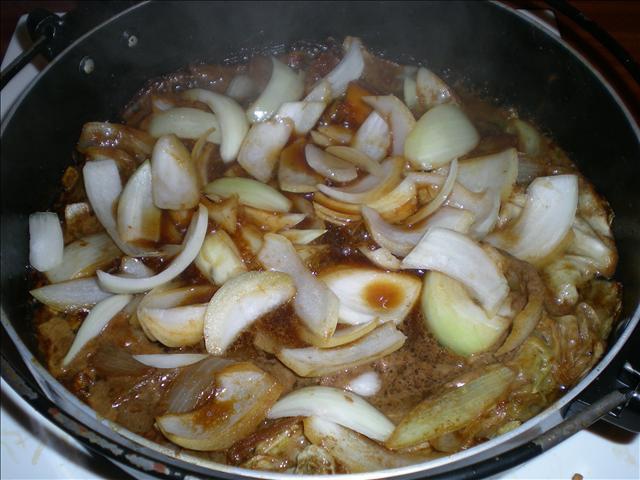 這次跟龍貓來,在鍋底他加入了許多洋蔥下去~(燉洋蔥?)