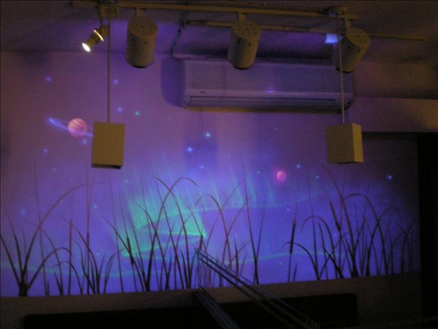 看似普通的牆壁在關燈時會變成一片藍色的星空~